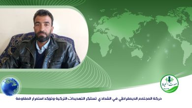 حركة المجتمع الديمقراطي في الشدادي تستنكر التهديدات التركية وتؤكد استمرار المقاومة