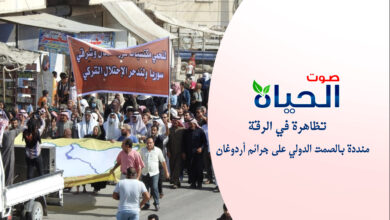 أهالي الرقة يتظاهرون تنديداً بالصمت الدولي على جرائم الاحتلال التركي