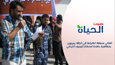 أهالي منطقة الكرامة في الرقة يخرجون بمظاهرة حاشدة استنكارً للوجود التركي