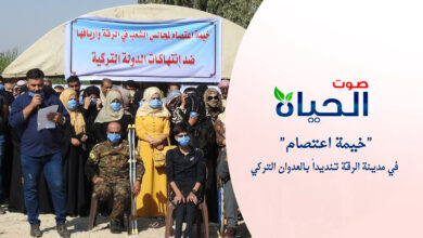 نصبت إدارة المرأة بالتنسيق مع المجالس المحيلة في مدينة الرقة خيمة اعتصام تنديدا بانتهاكات وجرائم العدوان التركي وارتكابه المجازر بحق…
