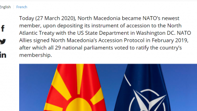 قال الأمين العام لحلف شمال الأطلسي ينس ستولتنبرغ في بيان له: “إن مقدونيا الشمالية أصبحت الآن عضوا في عائلة الناتو،…