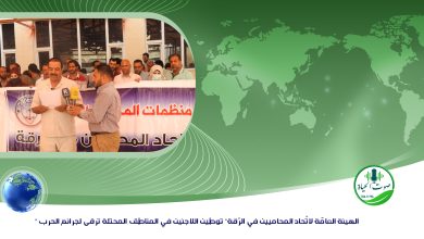 الهيئة العامّة لاتّحاد المحاميين في الرّقة” توطين اللاجئين في المناطق المحتلة ترقى لجرائم الحرب “