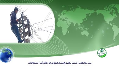 مديرية الكهرباء تستمر بالعمل لإيصال الكهرباء إلى كافّة أحياء مدينة الرقّة