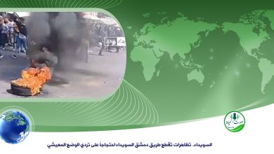 السويداء.. تظاهرات تقطع طريق دمشق السويداء احتجاجاً على تردي الوضع المعيشي
