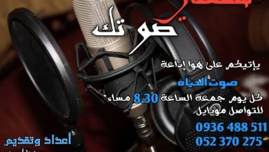 #برنامج_سمعني_صوتك يإتيكم على هوا إذاعة #صوت_الحياة كل يوم #جمعة الساعة 8.30 مساءً حيث يتم ضمن البرنامج مناقشة عدة أمور أجتماعية للتواصل والمشاركة بالبرنامج #موبايل 0936488511…