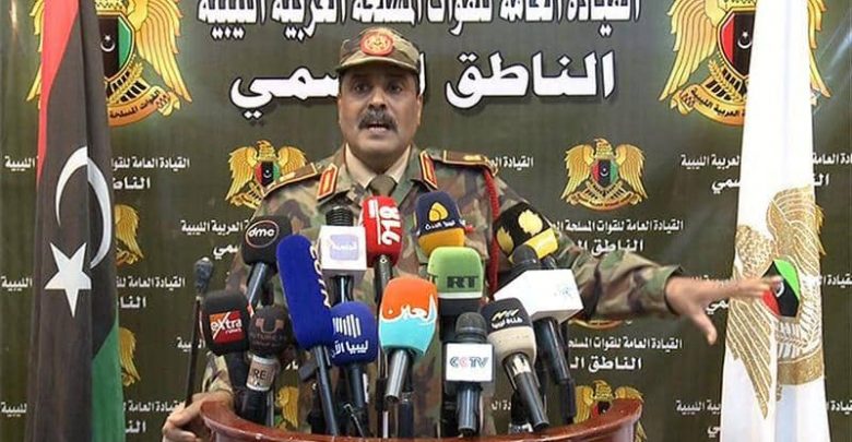 أكّد المُتحدّث باسم الجيش الوطنيّ اللّيبيّ أحمد المسماريّ أنّ الالتزام بوقف إطلاق النّار فضح دعم أردوغان للإرهاب، وكشف المسماريّ عن أنّ أردوغان أنشأ شركة أمنيّة من أجل تنفيذ عملياّت إرهابيّة, وقال المسماريّ في مؤتمر صحفيّ له: “الجيش الوطنيّ اللّيبيّ ملتزم بوقف إطلاق النّار؛ لإعطاء فرصة للحلّ السّلميّ، وتعرية العدوّ أمام المُجتمع الدّوليّ”, وأضاف المسماريّ: “الالتزام بوقف إطلاق النّار فضح أردوغان أمام المُجتمع الدّوليّ في دعمه للإرهاب”, وخلال المؤتمر عرض المسماريّ أدّلة على دعم تركيّا للإرهاب قائلاً: “أردوغان أنشأ شركة أمنيّة تحوّلت إلى ذراع لتنظيم الإخوان من أجل تنفيذ عمليّات إرهابيّة”, وأضاف المسماريّ: “أردوغان كان يستهدف إرسال 18 ألف إرهابيّ إلى ليبيا”, وأوضح: “تركيّا قامت بنقل ما يصل إلى 2000 عنصر من جبهة النّصرة إلى ليبيا عبر مطار معيتيقة”.