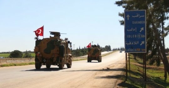سيّر الاحتلال التركي دورية عسكرية على الطريق السريع حلب اللاذقية المعروف بإم فور دون مشاركة القوات الروسية، بحسب المرصد السوري لحقوق الإنسان وانطلقت الدورية من قرية الترنبة الواقعة غربي مدينة سراقب، وسارت على الطريق الدولي وصولاً إلى قرية مصيبين الواقعة شرقي إدلب وتعتبر الدورية هي الثانية خلال أقل من أربع وعشرين ساعة، وتزامنت مع إعلان وزارة الدفاع الروسية عن أربعة خروقات لوقف إطلاق النار من قبل الفصائل التابعة للاحتلال التركي وهيئة تحرير الشام الإرهابية