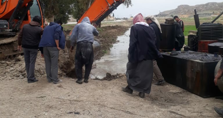نتيجة الهطولات المطرية الغزيرة خلال اليومين الفائتين تشكلت السيول في قريتي العكيرشي و رطلة في ريف الرقة الجنوبي.