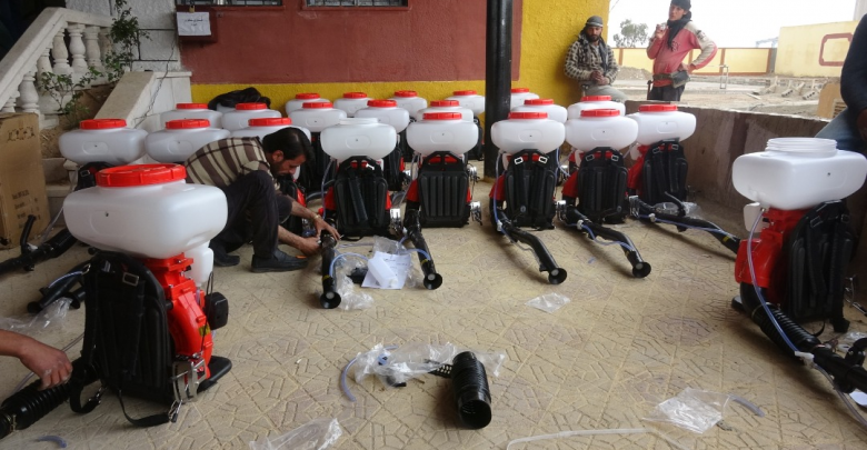تشكيل فرق تعقيم في الريف الغربي والشرقي والشمالي ودعمها بالآليات والمعدات من عفارات أوتوماتيكية ويدوية بالإضافة إلى أجهزة بخ ضبابي وصهاريج مياه لغسل المحال التجارية وإطفائيات.