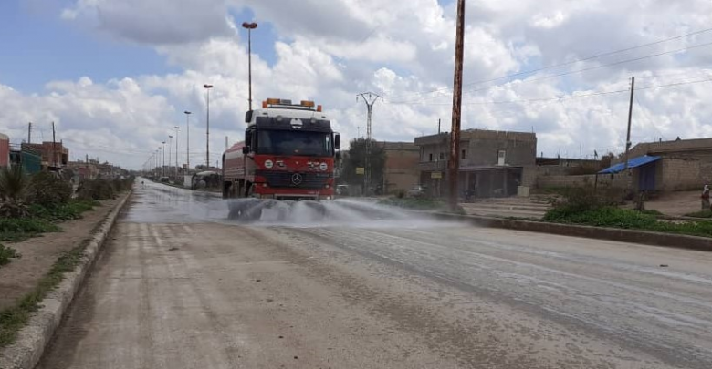 وسط استمرار حظر التجوّل الذي أعلنت عنه الإدارة الذاتية لشمال وشرق سوريا، تستمر بلديات الشعب في القيام بأعمالها دخل قرار حظر التجوّل الذي أعلنت عنه الإدارة الذاتية لشمال وشرق سوريا يومه الـ9، الذي بدأ بتاريخ 23 من الشهر الجاري، تجنباً وحرصاً منها على الوقاية من فيروس كورونا، ووسط التعليمات الصادرة باتخاذ التدابير الوقائية والصحية وإغلاق كافة المراكز والمؤسسات باستثناء ما تدعو طبيعة عملها إلى الاستمرار.