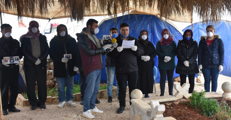 البيان قرئ في مُخيم سردم الواقع في مقاطعة الشهباء من قبل عضو المؤسسة، سلام سيدو.