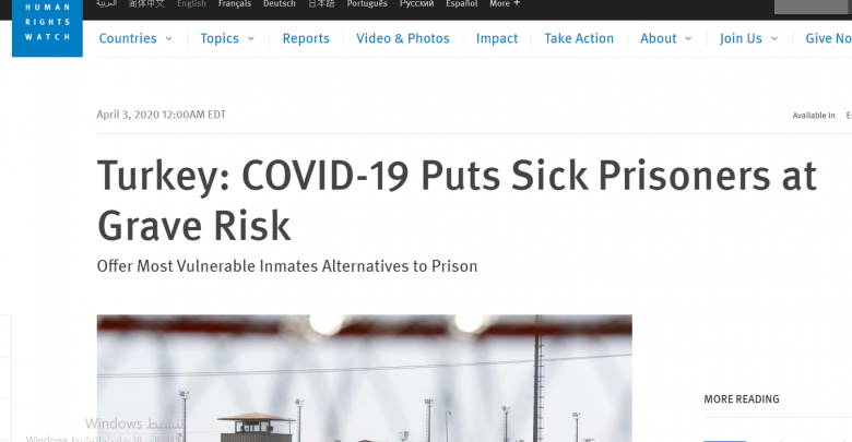 هيومن رايتس ووتشأن: السجناء في تركيا في حالة خطيرة