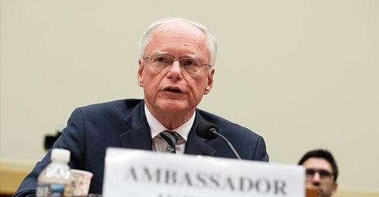 في حديث له مع صحيفة الشرق الأوسط، كشف المبعوث الأمريكيّ الخاص إلى سوريا، جيمس جيفري، رؤية بلاده الجديدة بشأن حلِّ الأزمة في سوريا، جيفري قال إنّ الخطوة الأولى الأساسية تكمُن في خروج كلِّ القوى الأجنبية التي دخلت بعد عام 2011 من سوريا، بما فيها الأمريكية والإيرانية والتركية، المبعوث الأمريكي رهن خروج قوات بلاده من سوريا، بإنهاء مهمتها العسكرية هناك بشكلٍ كامل، التي قال إنّها لم تنته بعد، وهي القضاء على مرتزقة داعش نهائياً، مشيراً أنَّ حليفهم في هذه المهمة هي قوات سوريا الديمقراطية، المنتشرة على الأرض بشكل فعلي في شمال وشرق سوريا، وحول العقوبات المفروضة على الحكومة السورية، قال جيفري إنّ بلاده تؤيد سريانها على النظام السوري حتى قبوله بالحلِّ السياسيّ، لأنَّ العقوبات تزيد من سوء الأوضاع على دائرة الشخصيات المقربة للغاية من رئيس النظام بشار الأسد وفق تعبيره، جيفري أوضح أنّ إيجاد صيغة للحلِّ السياسي هي الخيار الوحيد أمام الحكومة السورية، مشدداً على ضرورة أنْ تجرى الانتخابات الرئاسية القادمة تحت إشراف أممي، معتبراً أنَّ أيَّ انتخابات بغير تلك الوسيلة لن تحظى بالمصداقية، وأنَّ الأسد لن يحظى بالمصداقية الدولية وسيقابل بالرفض الدولي التام بدون ذلك كونها جماعة إرهابية، وهي تشكل أيضاً تهديداً لما وصفها بقوى المعارضة المعتدلة ،وحول الأوضاع في محافظة إدلب قال جيفري إنّ هيئة تحرير الشام الإرهابية تشكل تهديداً للجميع
