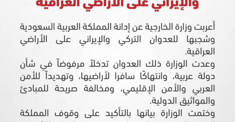 الخارجية السعودية تدين “العدوان” التركي الإيراني على الأراضي العراقية