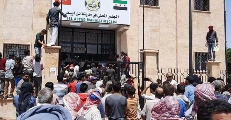 محتجون يقتحمون مقر ما يسمى المجلس المحلي في منطقة كري سبي /تل أبيض المحتلة
