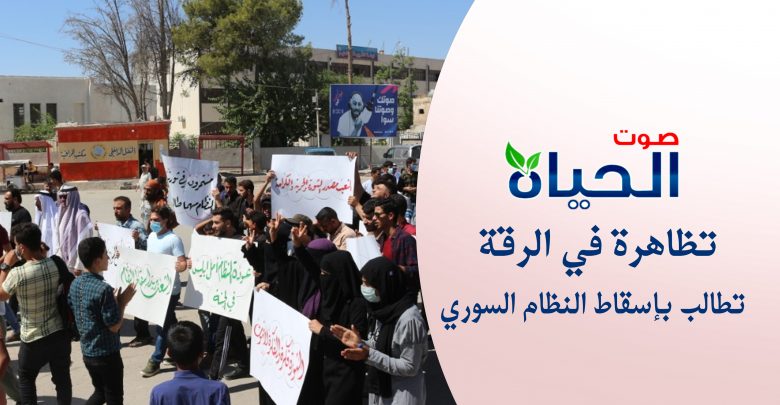 أهالي مدينة الرقة يخرجون في تظاهرة حاشدة للمطالبة بإسقاط النظام السوري