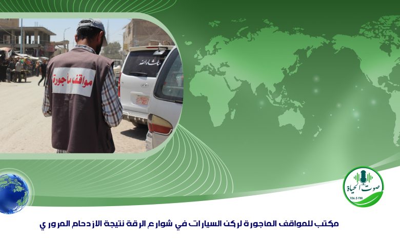 مكتب للمواقف المأجورة لركن السيارات في شوارع الرقة نتيجة الازدحام المروري