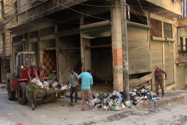 مجموعة من الأشخاص في حيي الشيخ مقصود والأشرفية في مدينة حلب شمال سوريا، عيدهم ليس كعيد البقية، فبينما يحتفل الجميع بعيد الأضحى المبارك ويتبادلون الزيارات، يبدأ عمال النظافة صباحهم بجمع القمامة من الشوارع وهدفهم الحفاظ على نظافة الأماكن خلال أيام العيد حيث تمتلئ الشوارع بالأطفال.. حيث يباشر 80 عاملاً من عمال النظافة مع عدتهم من آليات وجرارات في حي الشيخ مقصود والأشرفية (بني زيد)، عملهم صباحاً